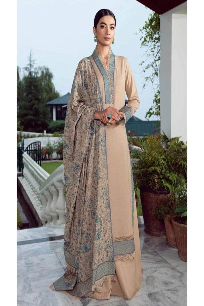 Embroidered dhanak front with dupatta emb patch, embroidered sleeves, plain dyed dhanak back