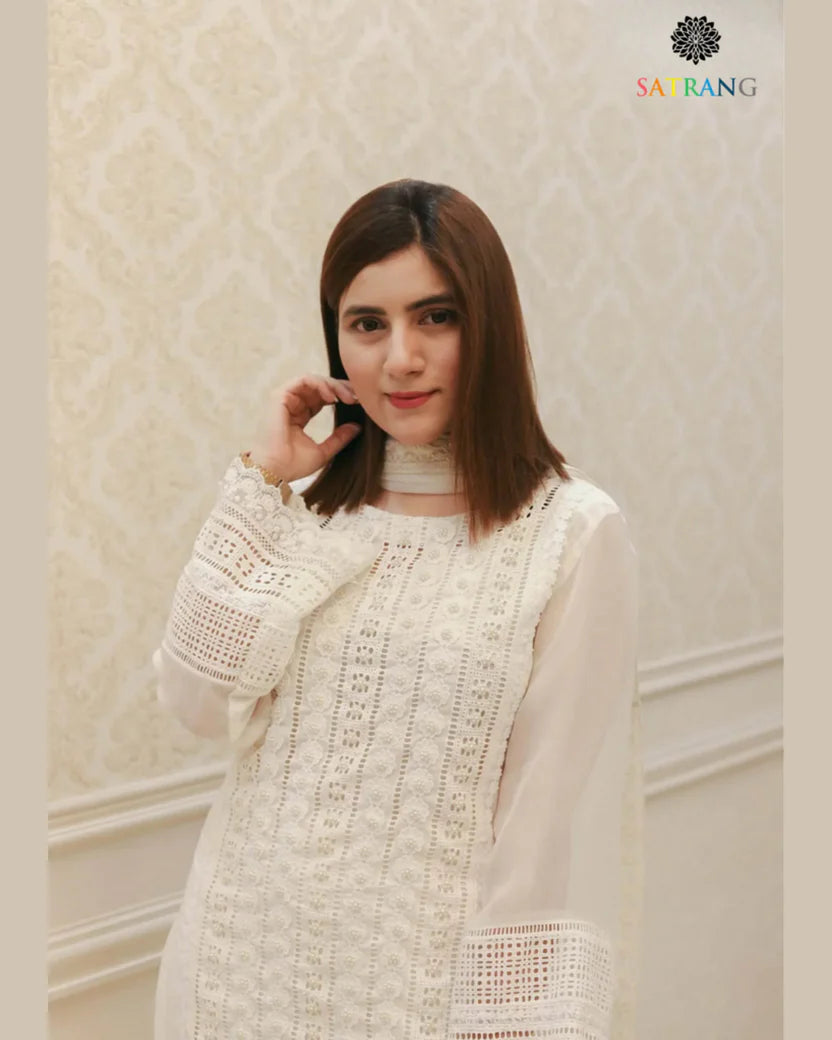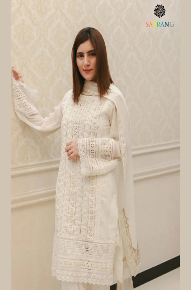 Fully embroidered lawn front and sleeves with a plain dyed lawn back
