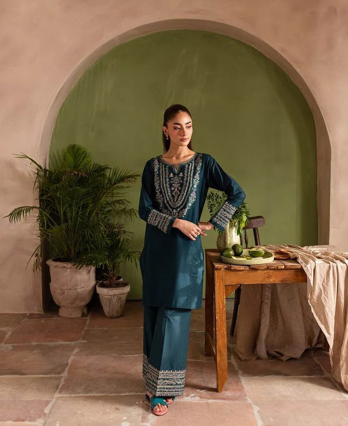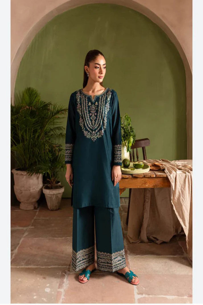 Embroidered Dhanak front with matching embroidered dhanak sleeves and a plain dyed dhanak back