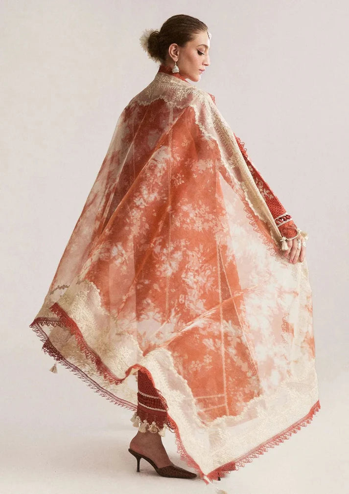 Embroidered dhanak front with daman shiffli work and daman emb patch, embroidered sleeves, and a plain dyed dhanak back