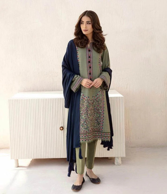 Embroidered khaddar front with embroidered sleeves, plain dyed khaddar back