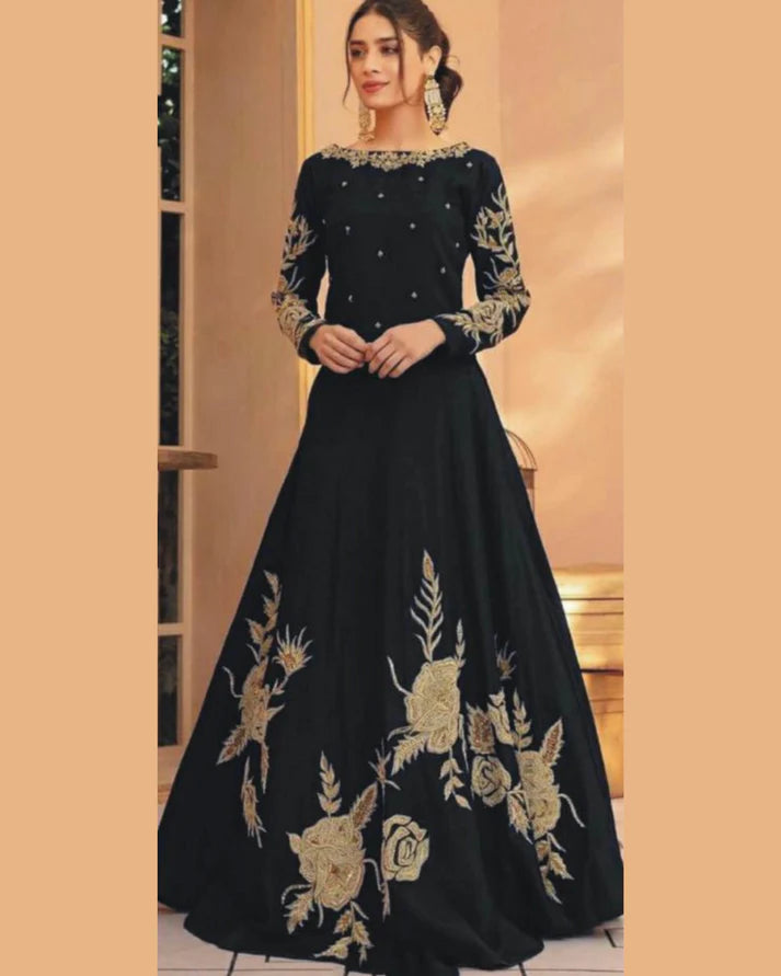 Embroidered katan silk front with matching embroidered katan silk sleeves and a plain dyed katan silk back