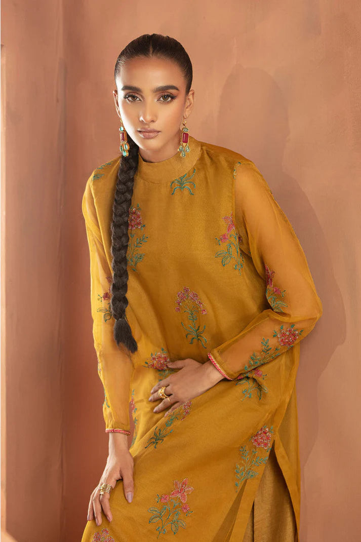 Embroidered organza front with matching embroidered organza sleeves and inner a plain dyed organza back