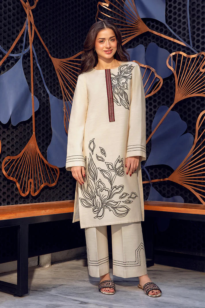 Embroidered karandi front with matching embroidered karandi sleeves and a plain dyed karandi back