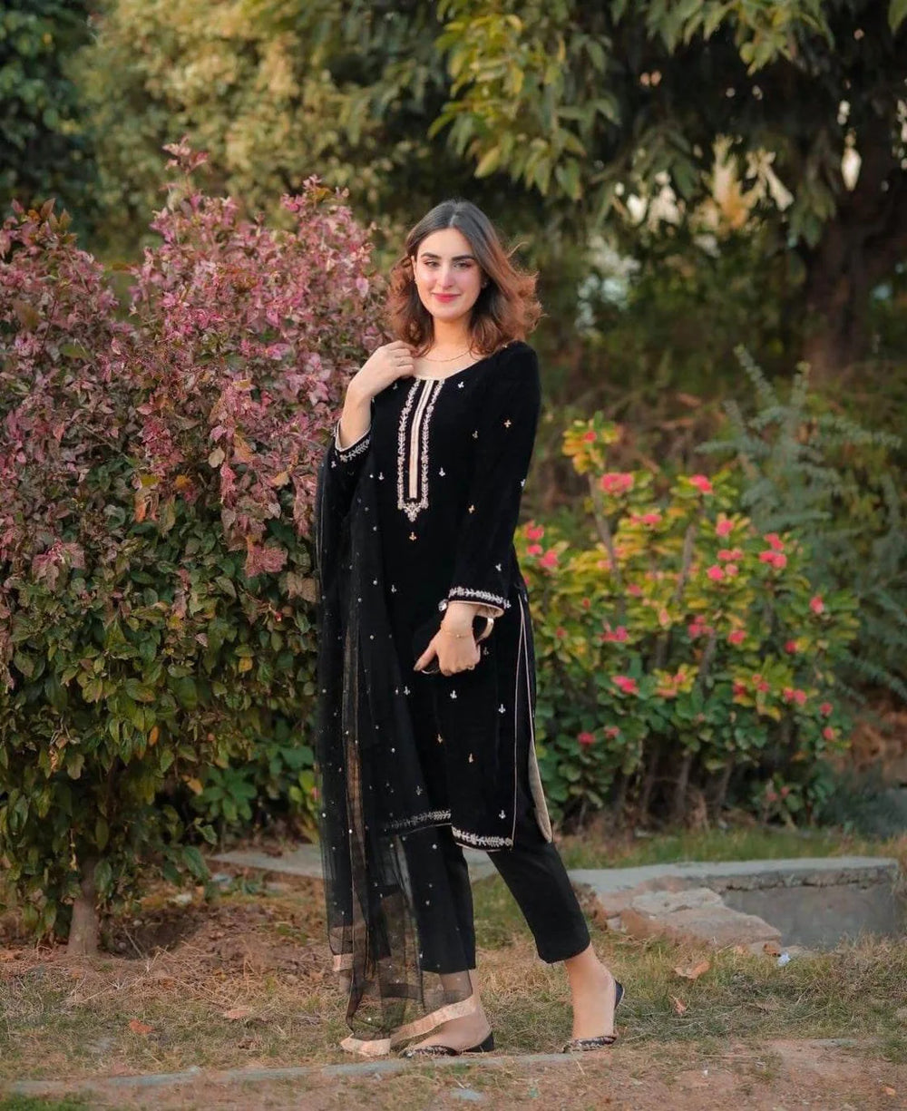 Embroidered Velvet front with, embroidered sleeves, plain dyed Velvet back